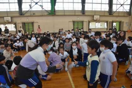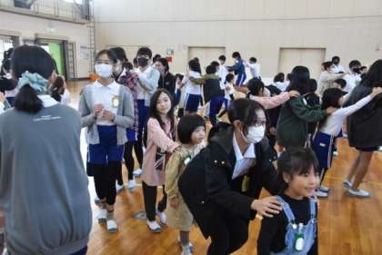 11月22日(水)の、さわやか1の時間に、1,6年生の交流を行いました。内容は「じゃんけん列車」です。事前に活動の内容やルールを、6年生が1年生の教室へ行き、説明しました。また、当日は、1年生を教室から会場である体育館まで、案内もしていました。