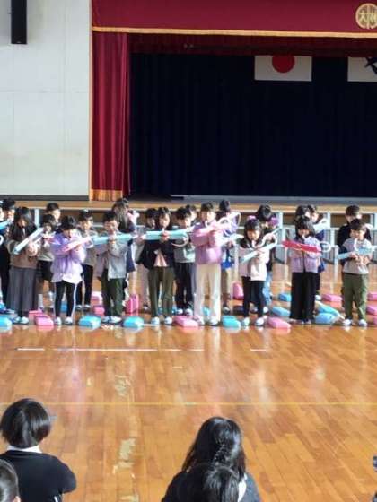 1年生は「できるマン」のダンスと「きらきらぼし」の歌、鍵盤ハーモニカ「虹」を演奏しました。