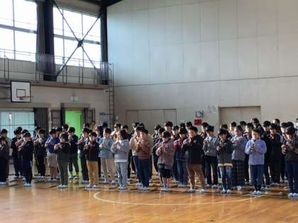 4年生は「オーラリー」をリコーダーで演奏し、「ジンギスカン」ダンスを披露しました。