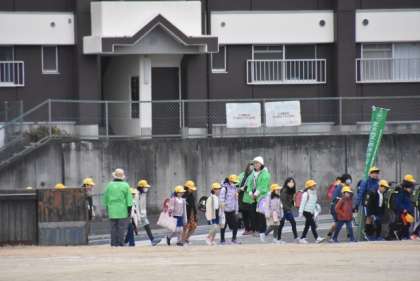 いつも、見守っていただいている顔をみつけ、子どもたちは、元気なあいさつを行っていました。