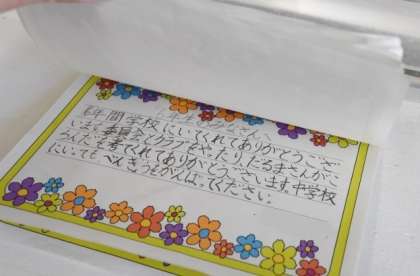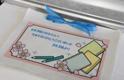 ふと、6年生の教室をのぞくと、3年生から6年生へ「感謝の手紙」が置いてありました。委員会や登下校、交流会などへの感謝の言葉が書かれていました。