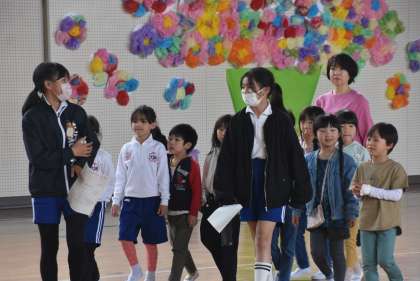 各通学団で、交通安全のきまりや並び方などを確認し、並んで歩く練習も行いました。