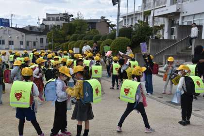 通学団での登下校は、班長、副班長が声かけをするが、それぞれの子が「自分の命は自分で守る」の意識をもって、信号を見たり、周囲をみたりしていこうと話をしています。