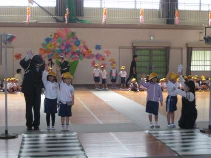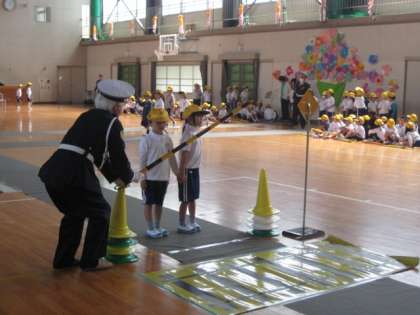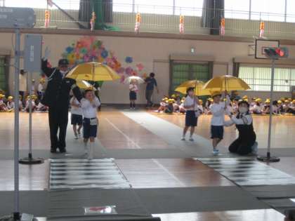 交通安全協会の方、交通指導員さんによる「交通安全教室」を体育館で行いました。
