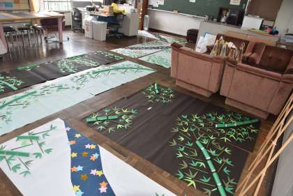 そこで、地域学校共働本部のコーディネーターさんに相談したところ、短冊を飾る掲示物を作っていただけることになりました。急な依頼にもかかわらず、ボランティアの方と、コーディネーターさんが協力して、制作が進んでいます。