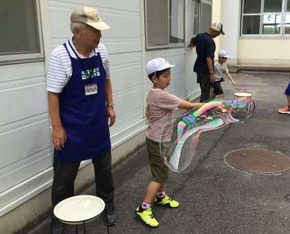 わかばの子たちが、豊田市ものづくり教育プログラムの一つ「シャボン玉プログラム」を行いました。