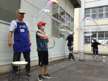 シャボン玉の不思議な体験をして、子どもたちは楽しそうでした。