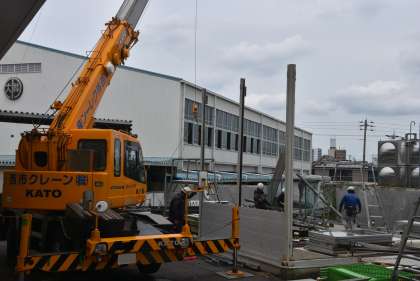 いよいよ、屋根と外壁をクレーンを使って解体されていました。