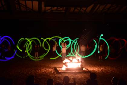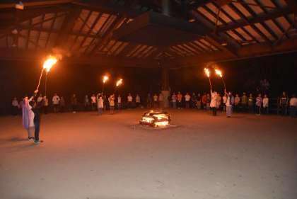 キャンプファイヤーも大詰め。トーチワークとメモリアルファイヤーへと進みます。