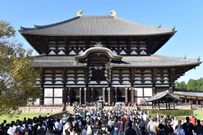東大寺南大門をくぐり、大仏殿見学後、奈良公園内でのグループ別行動を行いました。