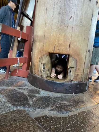 大きな大仏に驚き、鹿とたわむれながら、奈良公園の中歩き回りました。