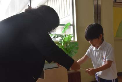 子どもたちは、うれしさ8割、何かはずかしさ2割で表彰を受けていました。