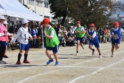 全員リレーでは、声を掛け合いながら、上手にバトンパスをつなげていました。