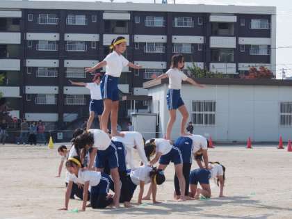 「組体操」「マスゲーム」の様子です。6年生にとっては最後の運動会です。