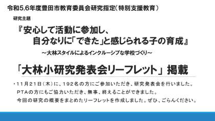 11月21日(木)「大林小学校 研究発表会」リーフレット公開