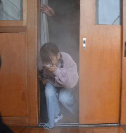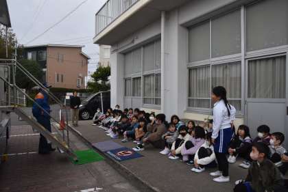 避難訓練に合わせ、4年生が「地震・煙道体験」を行いました。