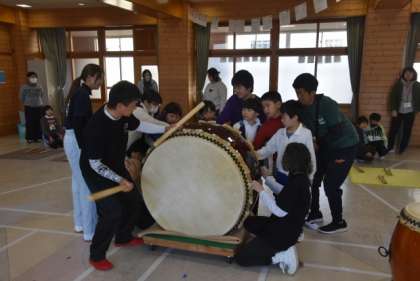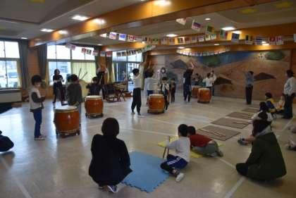 文化活動者派遣事業として「松平わ太鼓」の方をお呼びして「和太鼓体験」を行いました。