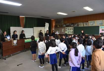 今年度は、英語ルームと会議室を利用して行いました。普段の読み聞かせと違い、舞台装置やクイズ形式などの工夫が凝らされ、子どもたちも大いに楽しんでいました。