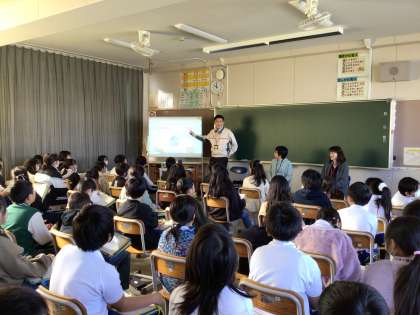 毎年、全校児童で「ありがとうの手紙」をボランティア等、お世話になっている方へ書いています。そのために、4年生が、ボランティア等の方にインタビューして、全校児童に、その活動を理解できるように紹介しています。