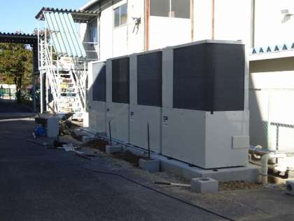 体育館エアコン設置中