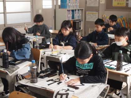 6年生は、小学校生活最後の書初め。