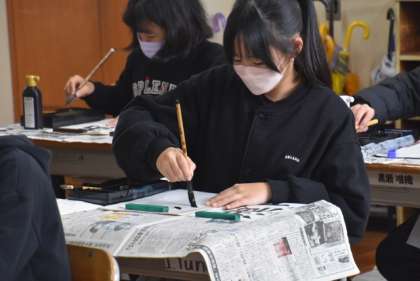 3年生は、初めての毛筆。