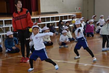 トヨタレッドテリアーズの選手による「投げ方教室」が行われました。