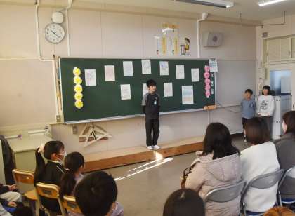 体育館での全体発表や、学習用タブレットを使用してのプレゼン形式、実物を使うものもありました。また、保護者の方たちにご協力もいただいた学年、学級もありました。ご協力や温かい拍手は、子どもたちの力になったかと思います。