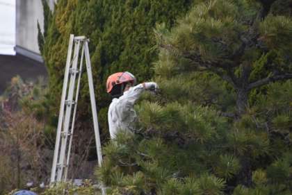 今季最強の寒波が襲来しているところですが、卒業式に向けて、校内整備員が松の剪定に取りかかっています。