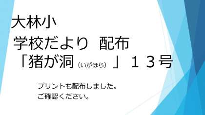 学校だより「猪が洞」13号を配布しました。ご覧ください。