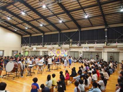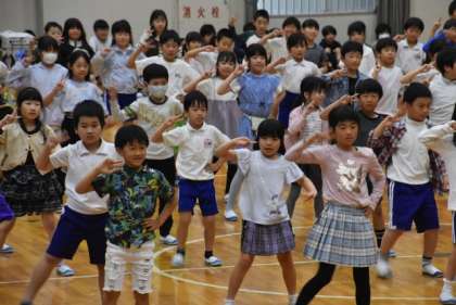 各学年が、歌に楽器演奏、ダンス、メダルの贈呈など、1年生に楽しんでもらったり、これから学習することを伝えたりしていました。