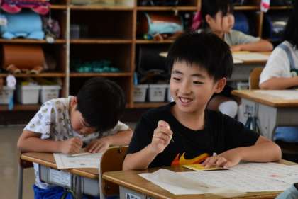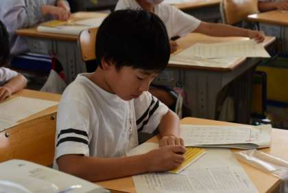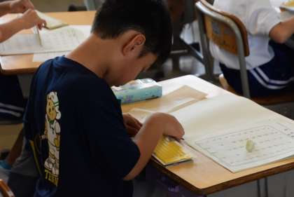 一人1台、点字器を貸していただき点字を学びました。まず、自分の名前を打ちながら、「いとう」は「いとー」と打つなどの、決まりを学びました。