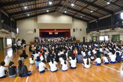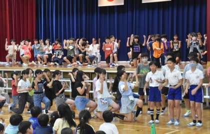 発表後、1〜5年生からアンコールがかかり、再度ボディーパーカッションを行うと、全校の子たちが、真似をしながら行われました。