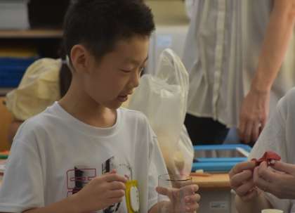 1,2,3年生の授業の様子です。時計の学習や、おもちゃ祭のためのおもちゃの制作、慣用句調べをしていました。
