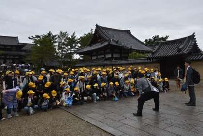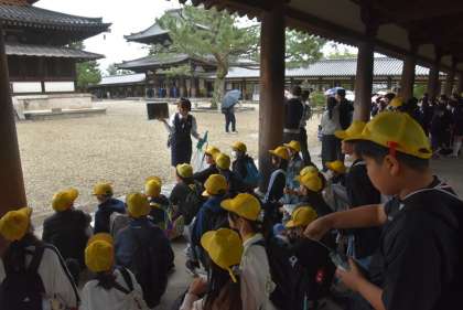 修学旅行、最初の訪問場所は「法隆寺」です。