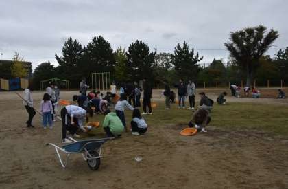 PTA執行部とボランティア、トヨタEX会、教職員有志により「運動会前環境美化活動」として、運動会当日の演技場所やトラック、応援席の雑草をとりました。