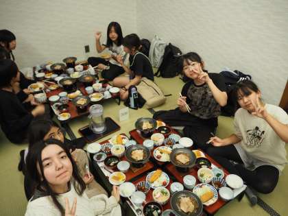 学年、学級の仲間と食事を共にし、部屋でも仲良く楽しみました。