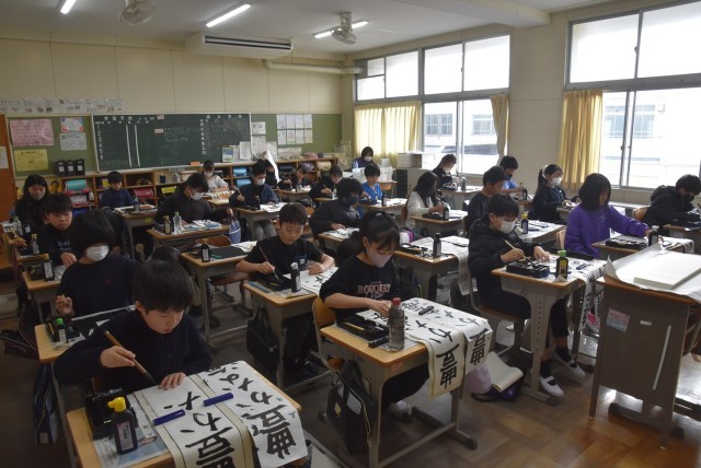 1,2年は硬筆、3~6年は毛筆で実施しました。練習した成果を発揮しようと、漢字とかなの大きさやバランスに注意しながら、集中して書き進めていました。