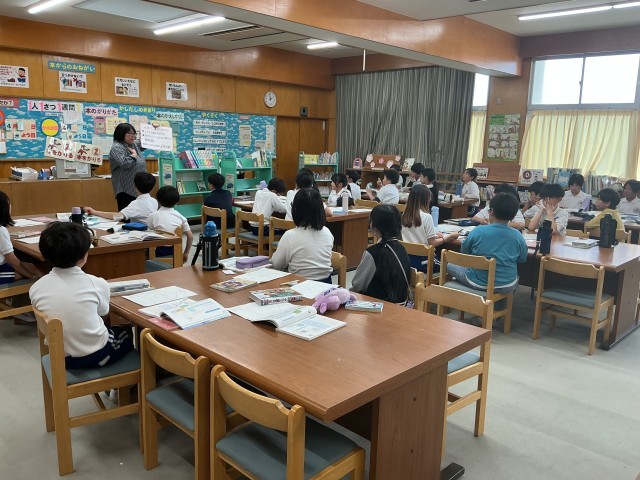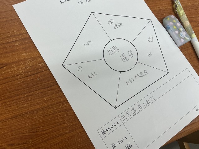 4月22日に、図書館司書の先生と本を使って調べたい内容を深める学習をしました。ペンタゴンチャートという表を使って、調べたい内容にあった本を見つけました。