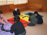 異学年交流、1,4年生のペアでの様子です。内容は「もうじゅう狩り」というゲーム...