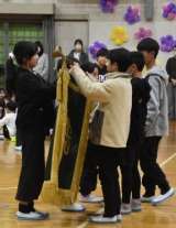 祝う会の最後に、6年生から5年生へ、校旗の引き継ぎを行いました。6年生は卒業に...