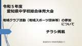 愛知県中小学校体育連盟より 「令和5年度 愛知県中学校総合体育大会 地域クラブ...