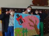 6年「卒業プロジェクト」の一環で、千羽鶴とペットボトルアートができあがりました...