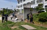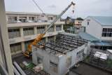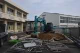 なかよし(放課後児童クラブ)の体育館側のプレハブ解体が、学校閉庁日明け再開され...