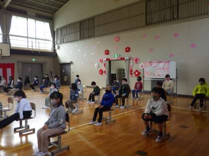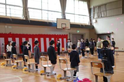 本年度は、6名の新入生をむかえ、全校で38名になりました。また、2年生から6年生は進級して、気分もあらたに新年度の式を全校で行うことができました。