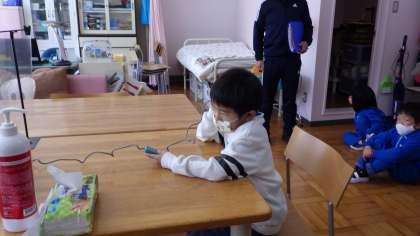 最初に、体育館で養護教諭の先生の指導のもと、体を動かして、運動器検診をしました。次に、名簿番号順に並んで、身長や体重、目の検査、耳の検査などをしました。全校が静かに行うことができました。