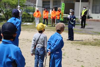 新型コロナウイルス感染症対策のため、交通安全の標語の唱和も密を避けてパートごとに分けたり、校歌や園歌を歌うことが中止になったりしましたが、子どもたちの元気な姿で、交通安全について地域にPRする良い機会になりました。