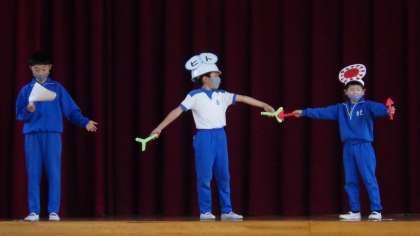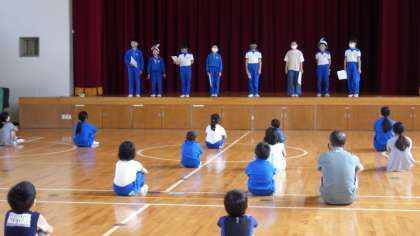 この日は、「新型コロナウイルス感染症対策は、なぜやらなければならないのか」というテーマで、ヘルシー委員会の子たちが「新型コロナウイルスがヒト細胞の中で変異して強くなる仕組み」を劇で発表しました。その後、子どもたちは、養護教諭の先生から、「自分がうつらない」「友達や家族にうつさない」「ウイルスを強くしない」という3つのために、マスク着用、手洗い、三密を避けて換気をするのだということを教えてもらいました。これからも、感染症対策について、子どもたち自身が考えて行動できるようにしていきたいです。