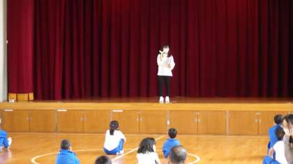全校朝会(ヘルシー委員会発表)