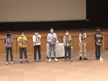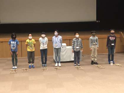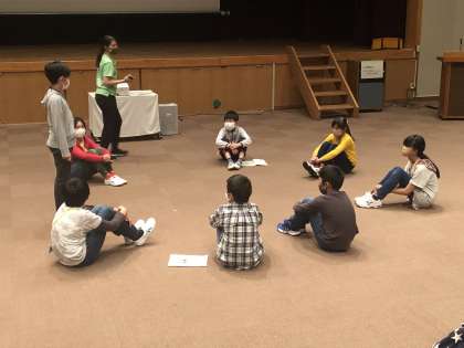 出会いの式が終わりました。その中で敷島小、稲武小、小渡小の順に学校紹介を行いました。小渡小学校は、学校の説明の後、竹楽器で演奏を行いました。素敵な音色が講堂に響き渡りました。それから、学校混合のグループに分かれて、自己紹介をしました。